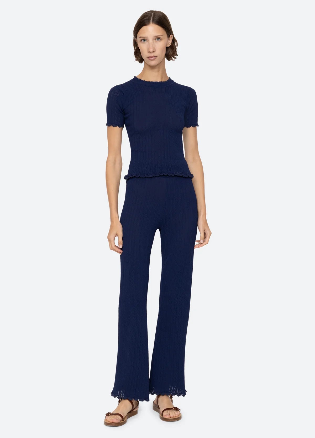 The Abbie knit short sleeve top features a ribbed neckline, crochet trim detailing and is designed for a slim fit. The perfect layering piece.