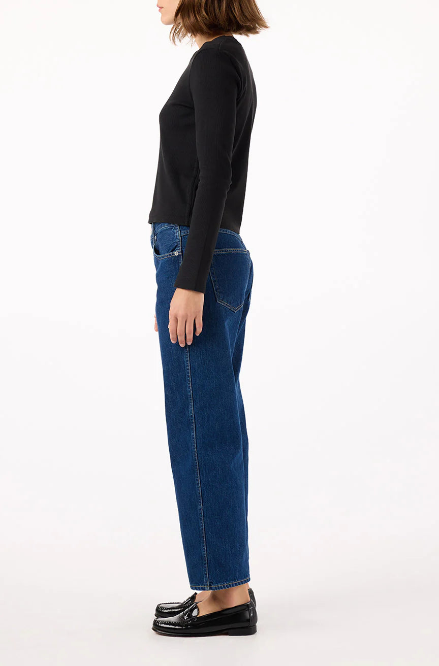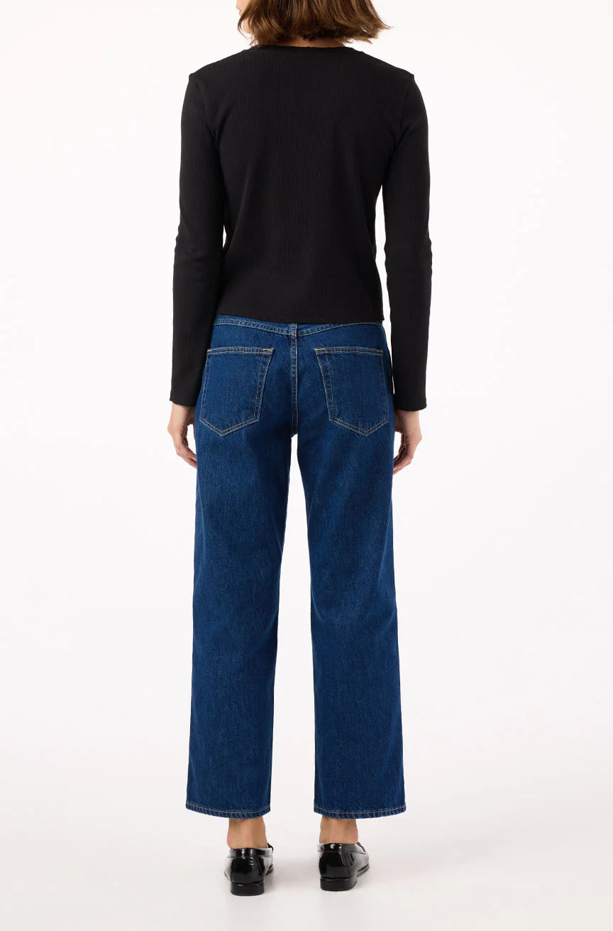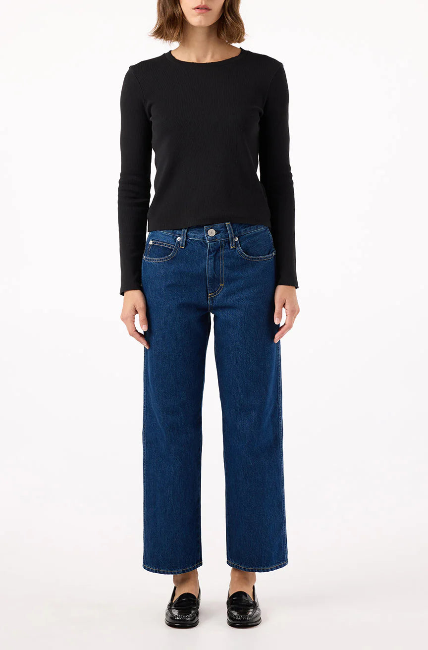 This cropped, wide straight leg is our easiest fit yet. With a mid rise, this pair is meant to sit low on the hips for a relaxed look, with zip fly.