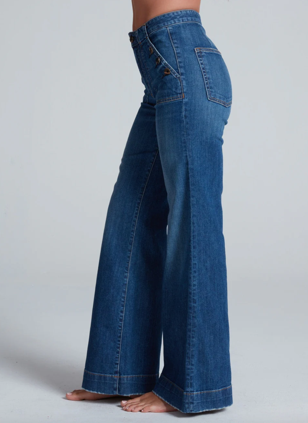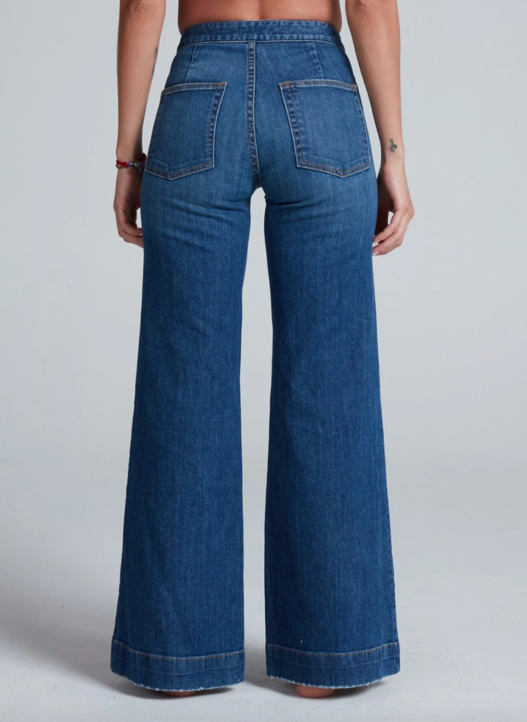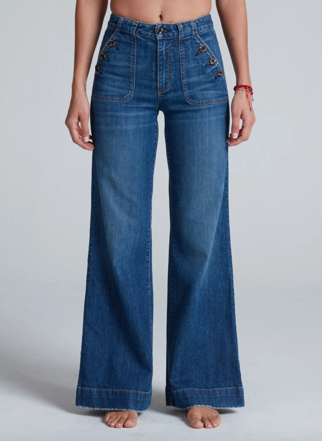 The Brickhouse is designed with a mid rise and dramatic wide leg, creating a bold yet timeless silhouette. With button detail front pockets and an elongated inseam, this style gives a polished finish, while the structure of Japanese denim ensures a flattering fit with everyday wearability. A modern statement jean that balances vintage inspiration with ease.
