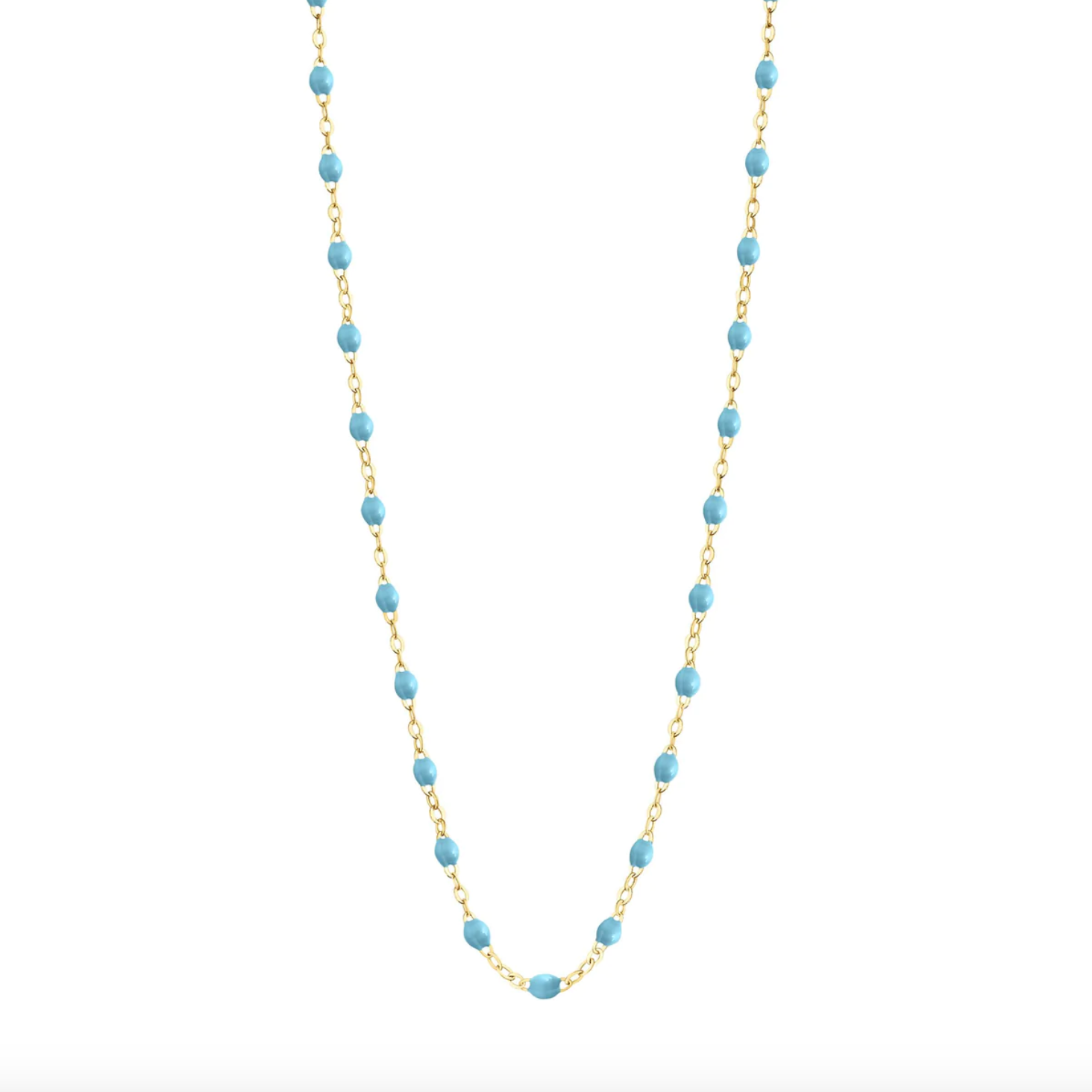The Classic Gigi necklace by gigi CLOZEAU features 18 carat Yellow Gold, and striking Turquoise jewels for an everyday effortless appearance.