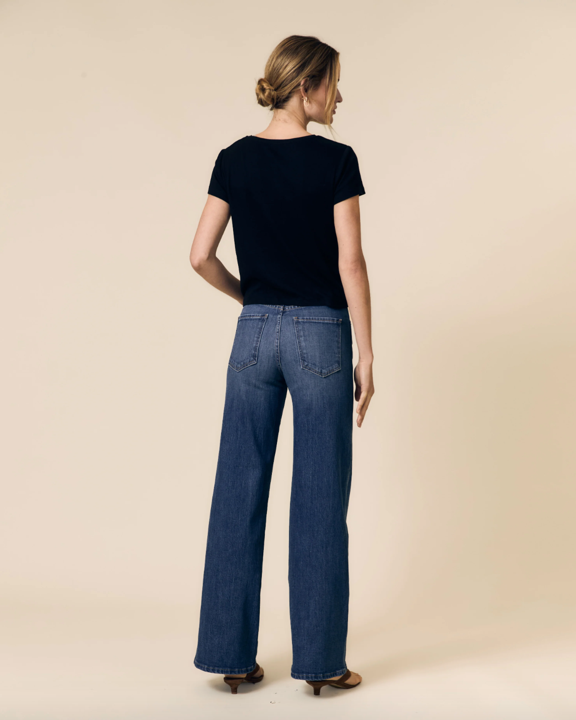 The Juliette Wide Leg is cut from the denim blended with the perfect amount of stretch for a comfortable fit. Designed to sit high on the waist, wide-legs and a full inseam. The classic indigo wash makes them endlessly versatile. Made in Los Angeles