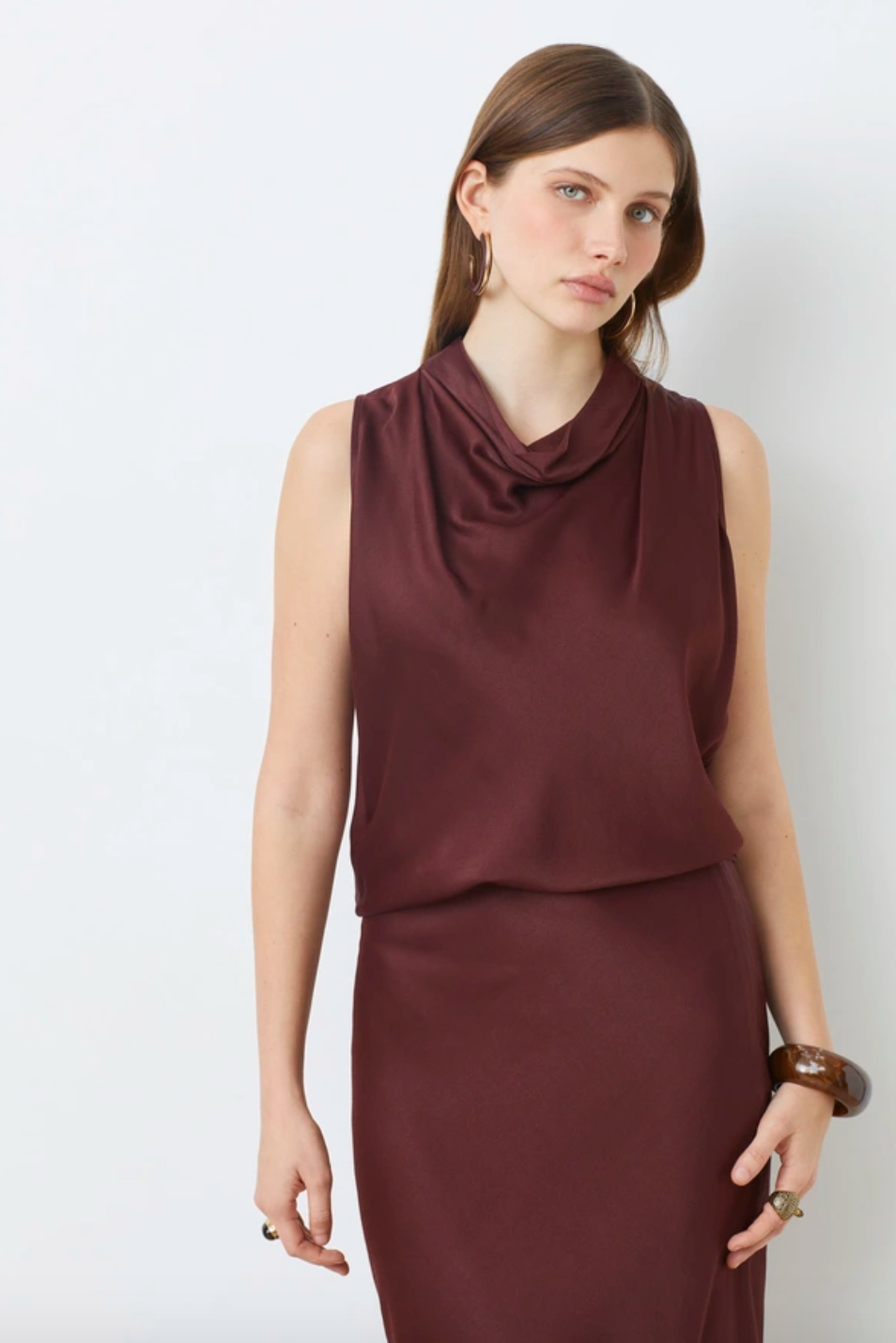 -Satin sleeveless blouse-Colllar neck-Made in 100% FSC viscose