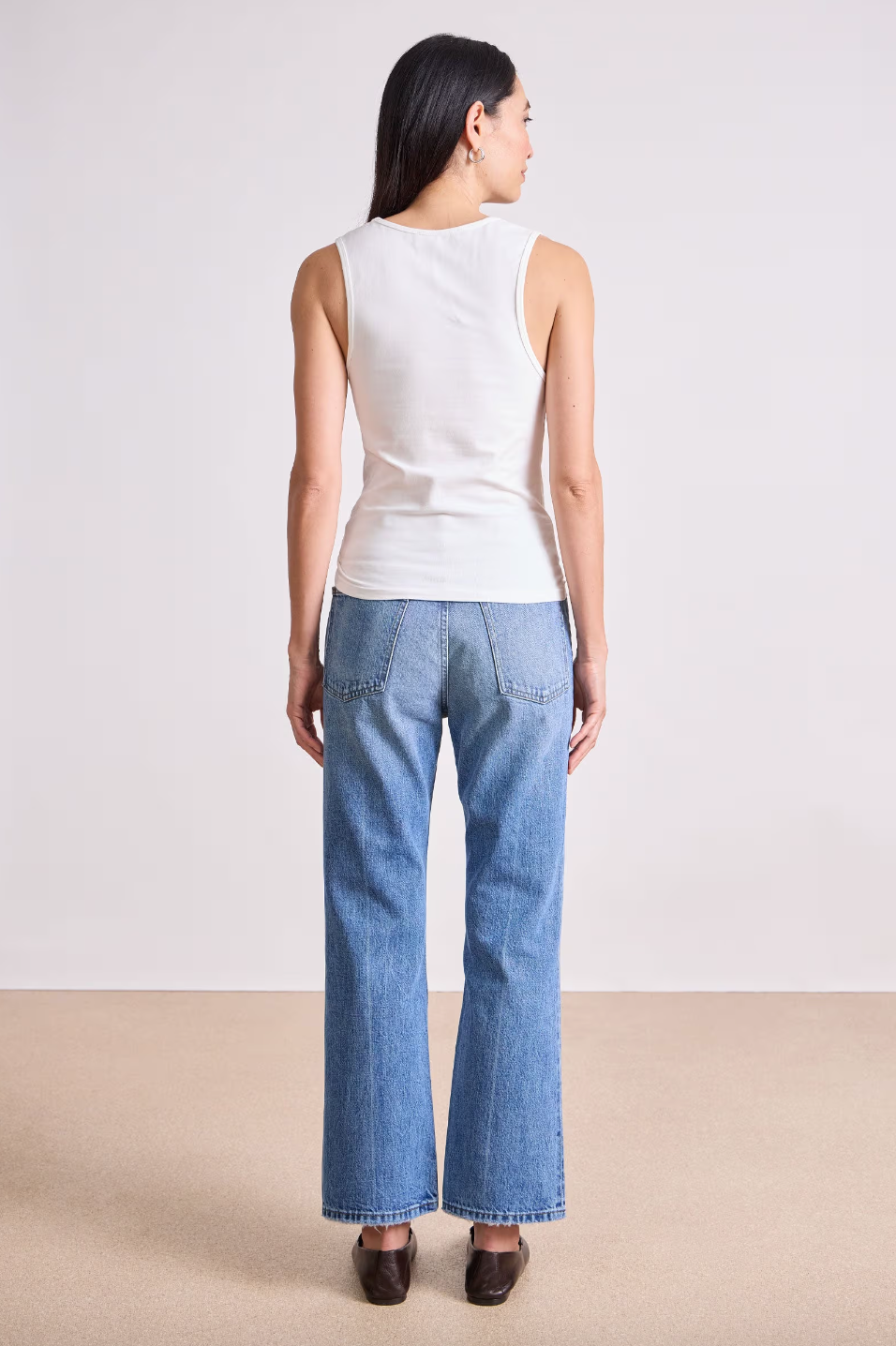 Designed with a cool kick flare for everyday ease, the Hermosa is perfectly broken in with slight whiskering and fading, which will become softer with each wear while maintaining the character and look of the jean.
