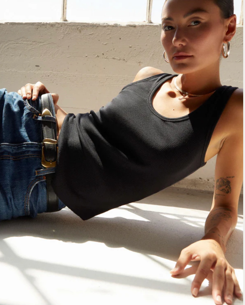 Inspired by that jet black vintage tank from the 70s (you know the one) with a modern feminine fit.