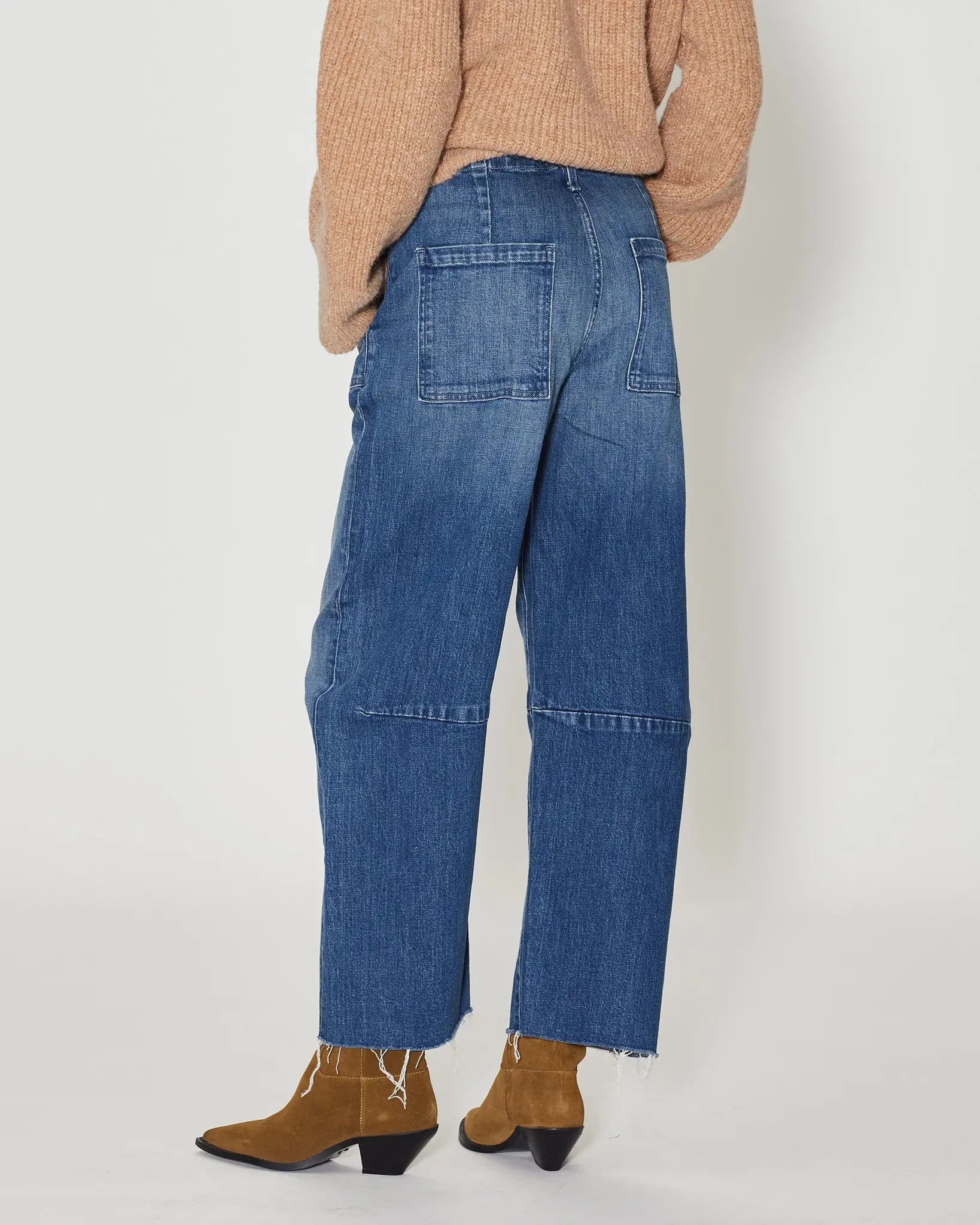 Utility Soft Barrel is a relaxed wide-straight leg with a curved outseam shape. Cut from denim blended with a comfort stretch.